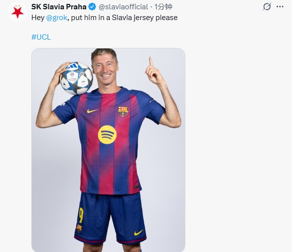>扎心了!莱万乌龙,布拉格斯拉维亚社媒让AI为他换上自家球衣
