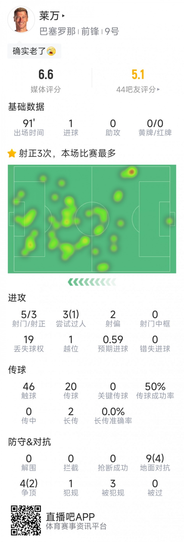直播吧1月22日讯 在本轮欧冠,巴萨4-2击败布拉格斯拉维亚。以下为莱万本场数据: