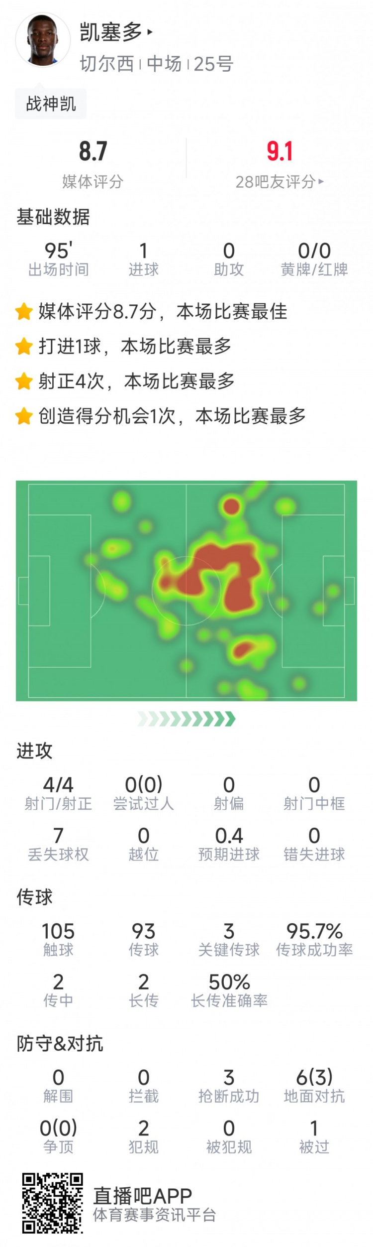 直播吧1月22日讯 在本轮欧冠,切尔西1-0击败帕福斯。以下为凯塞多本场数据: