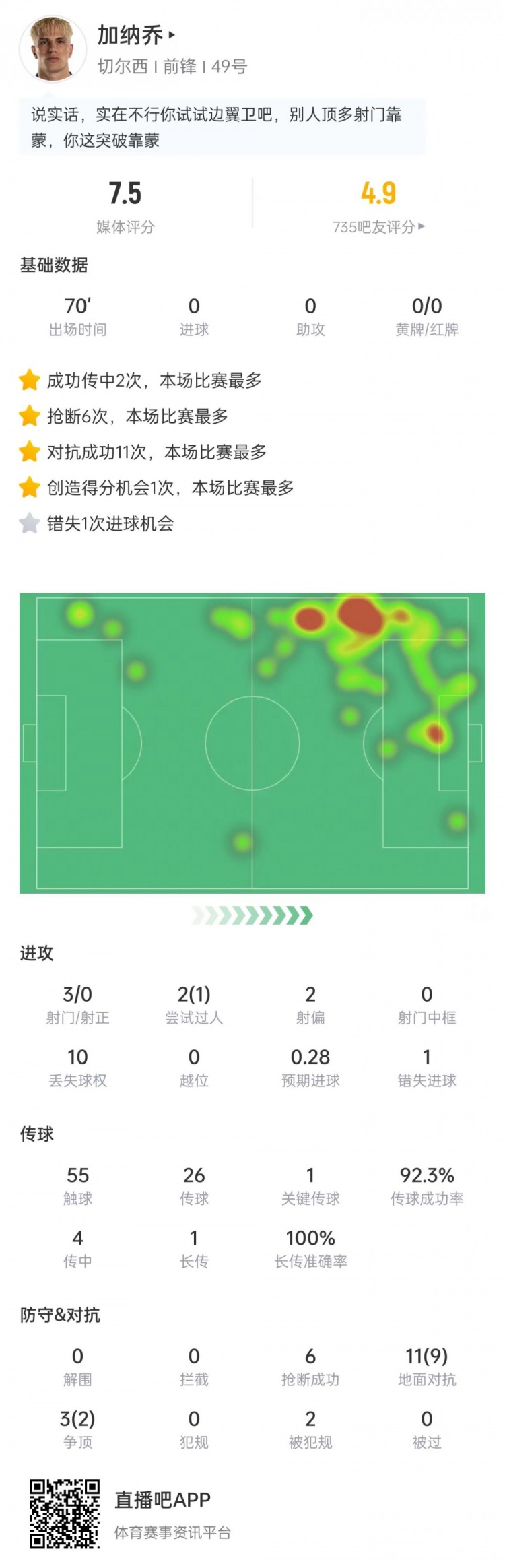 直播吧1月22日讯 欧冠联赛阶段第7轮比赛,加纳乔首发出战,切尔西主场1-0击败帕福斯。