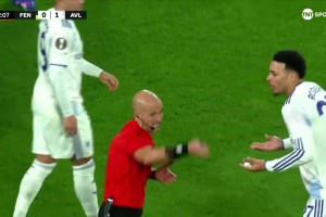 第42分钟,罗杰斯晃过埃德松后打空门被封堵,随后皮球打在裁判腿上,裁判判给对方球权。↓