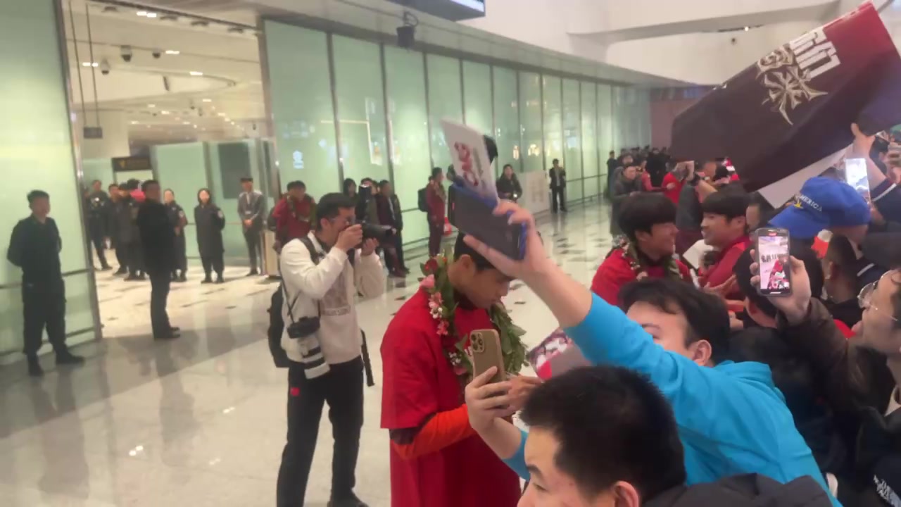 直播吧01月26日讯 直播吧现场直击,中国男足U23飞抵北京大兴机场,众多球迷在现场迎接。