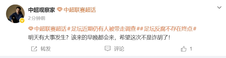 这条内容还带有一条话题:#足坛反腐不存在终点#。