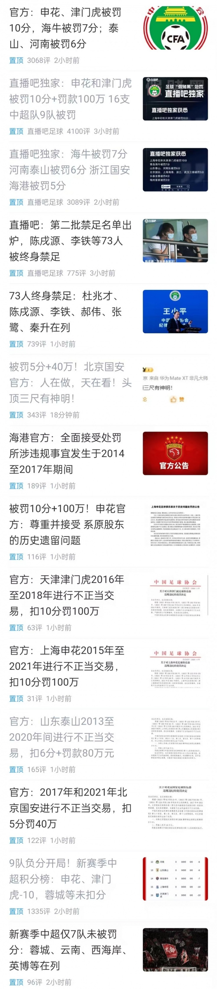顺带一提,中超球队最新处罚名单出炉了......