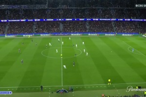 第50分钟,奥尔莫中路精准斜塞到禁区右路费尔明小角度抽射打在边网上。↓
