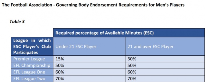 ESC球员仍需满足英足总规定的一些最低要求: