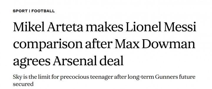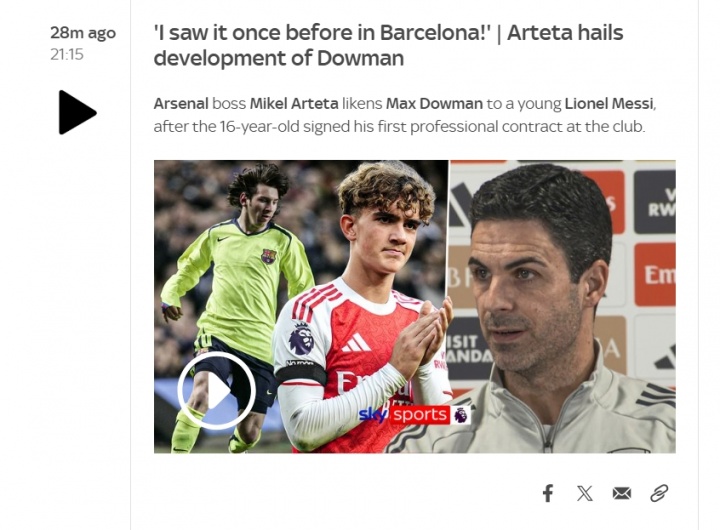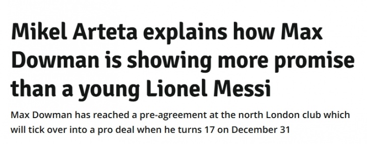 此后多家英媒发布文章,表示阿尔特塔将道曼与梅西相比较↓