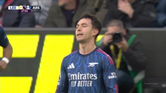 第37分钟,马杜埃凯主罚角球直接旋向球门,门将达尔洛在被自己队友勒温干扰的情况下将球击进自家球门,阿森纳2-0利兹联。↓