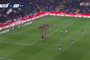 第45分钟,罗马禁区前沿获得任意球机会,苏莱主罚直接攻门,球绕过人墙后高出横梁!↓