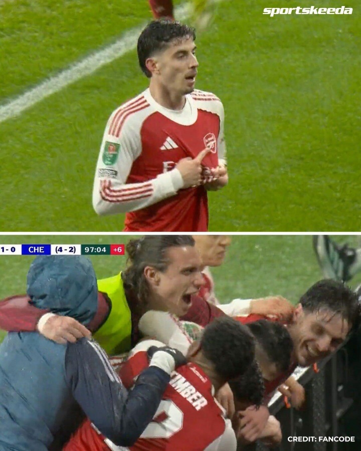 直播吧02月04日讯 联赛杯半决赛次回合,阿森纳vs切尔西,第97分钟,阿森纳反击机会,哈弗茨过掉门将后破门,赖斯助攻,阿森纳1-0领先切尔西!