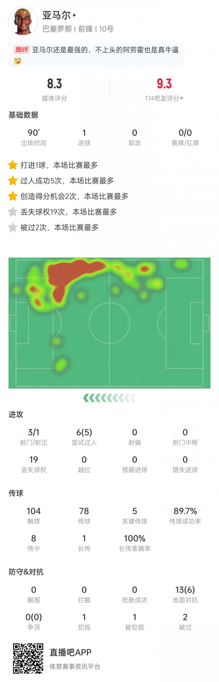 亚马尔本场数据