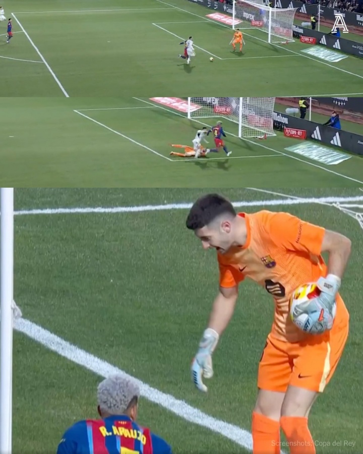 比赛过程中,曾出现令人啼笑皆非的一幕。上半场,阿劳霍和霍安·加西亚合力防下了对手的一次进攻,阿劳霍凭借与对方球员身体对抗抢占下优势身位,霍安则是出击将球没收。