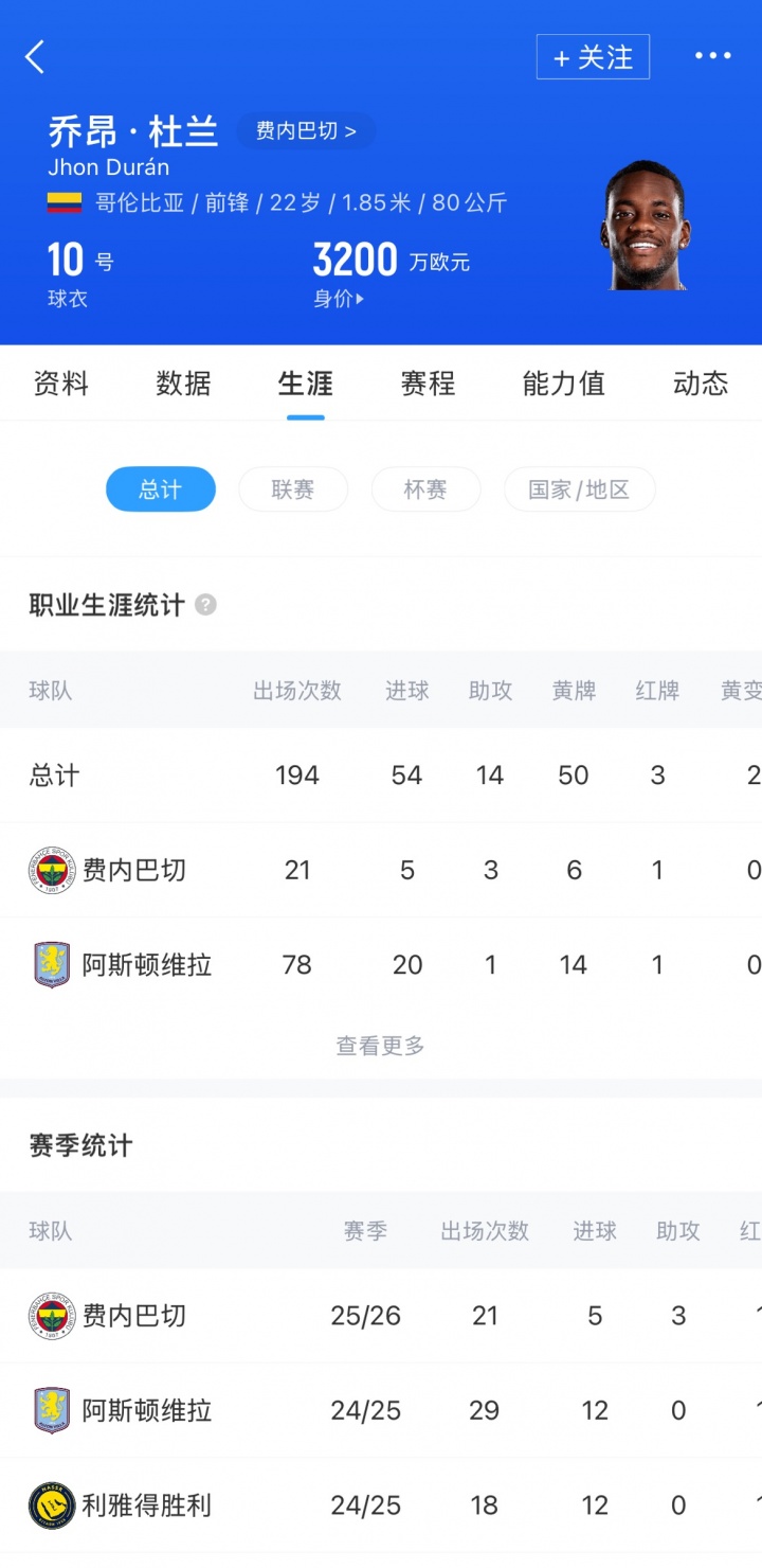 值得一提的是,杜兰在去年冬窗才以7700万欧元的高价,从阿斯顿维拉转会加盟利雅得胜利。