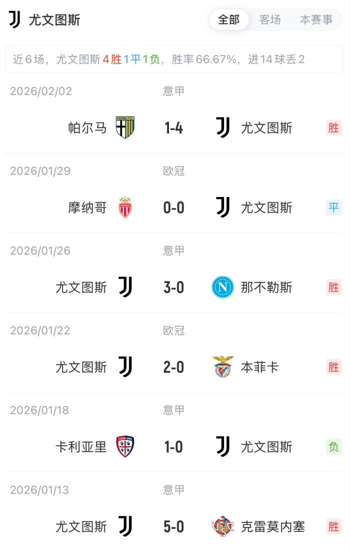 尤文首发:1-佩林、15-卡卢卢、3-布雷默、4-加蒂、6-凯利、19-K·图拉姆、5-洛卡特利、7-孔塞桑、22-麦肯尼、27-坎比亚索、30-戴维