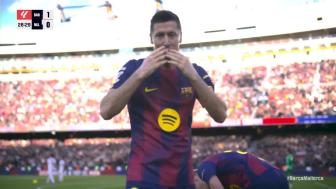 第28分钟,拉什福德远射经过折射正好来到莱万脚下,莱万顺势抽射破门,巴塞罗那1-0马洛卡。↓