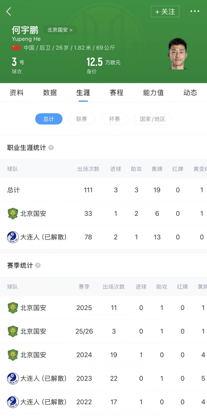 何宇鹏,2026年2月9日与深圳新鹏城进行教学比赛期间,在对抗传球过程中,球员左足立足被动扭转,导致足部扭伤。