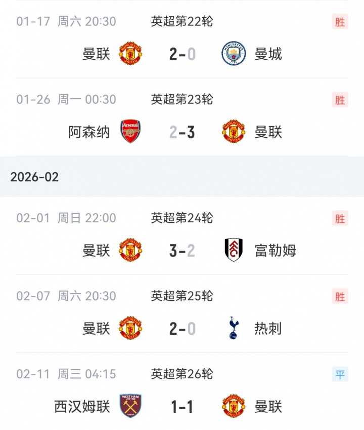 直播吧2月11日讯 本轮英超,曼联客场对阵西汉姆没能取得胜利,卡里克此次上任后带领球队取得的连胜成绩也暂时止步于4场!