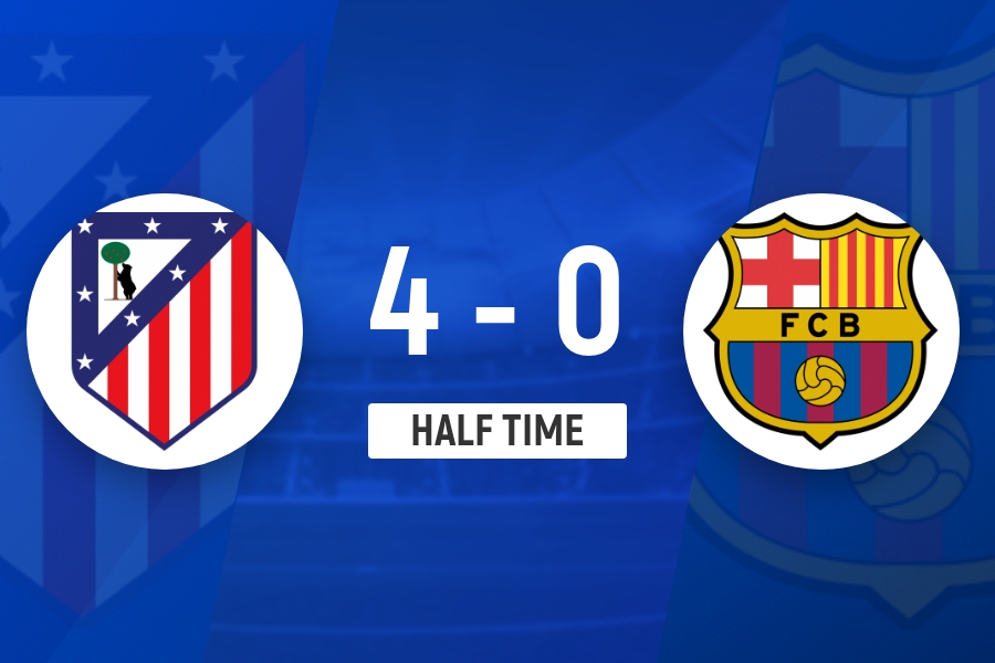 直播吧2月13日讯 北京时间2月13日凌晨4时整,2025-26赛季国王杯半决赛首回合在利雅得航空大都会球场展开角逐,马德里竞技主场迎战巴塞罗那。上半场霍安·加西亚超巨失误送礼,埃里克乌龙,格列兹曼弑旧主,阿尔瓦雷斯和卢克曼互献传射,马竞主场暂时4-0领先巴萨。