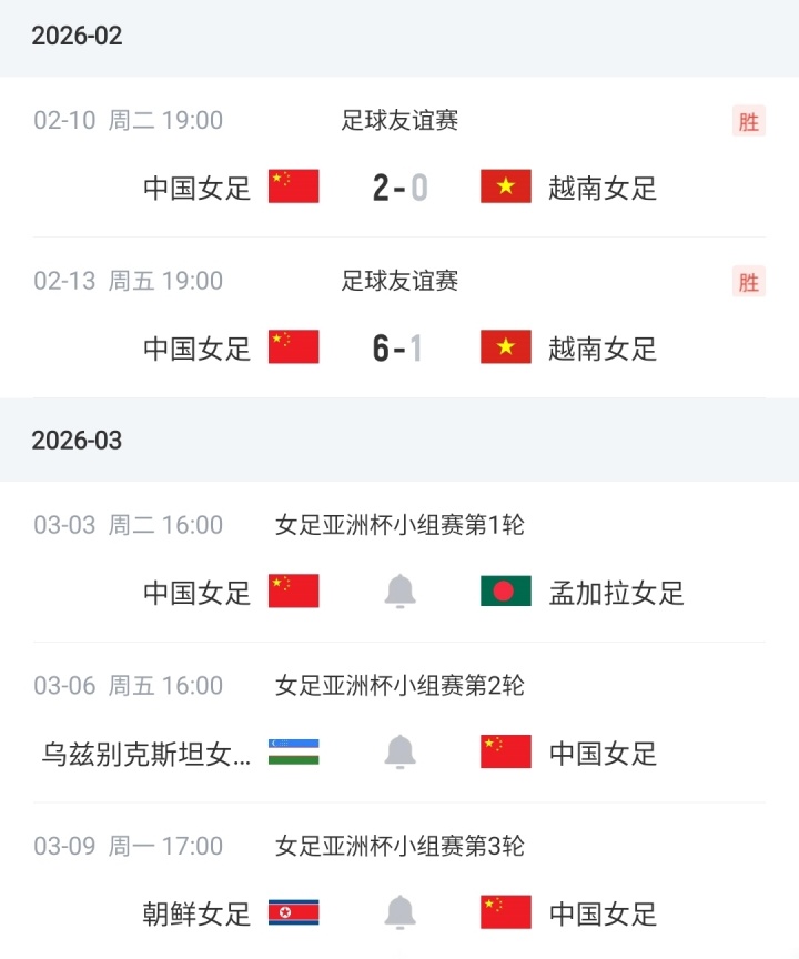 直播吧2月13日获悉,中国女足与越南女足的二番战中,中国女足以6-1大胜对手,取得对越南女足的两连胜。双方3天前的交手中,中国女足曾2-0击败越南女足。