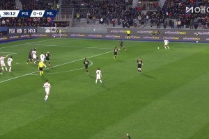 第71分钟,比萨后场长传,斯托基尔科维奇左侧倒三角回敲,洛约拉禁区内拿球,横向调整后起脚兜射破门,比萨扳平,1-1!↓