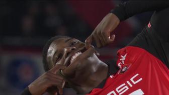 第34分钟,塔马里禁区前沿带球内切,连续摆脱晃开角度后起脚兜射破门,雷恩1-0领先!↓