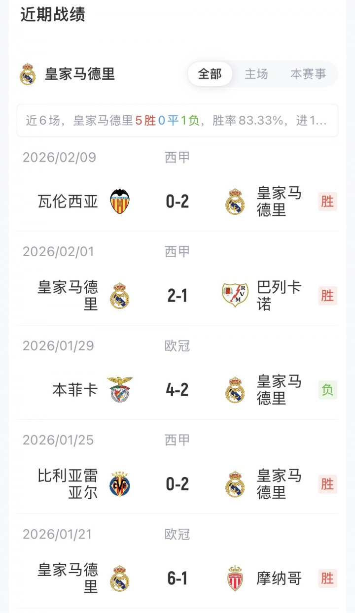 皇家马德里首发:1-库尔图瓦、12-阿诺德、22-吕迪格、24-赫伊森、18-卡雷拉斯、8-巴尔韦德、15-居莱尔、14-琼阿梅尼、6-卡马文加、16-贡萨洛、7-维尼修斯