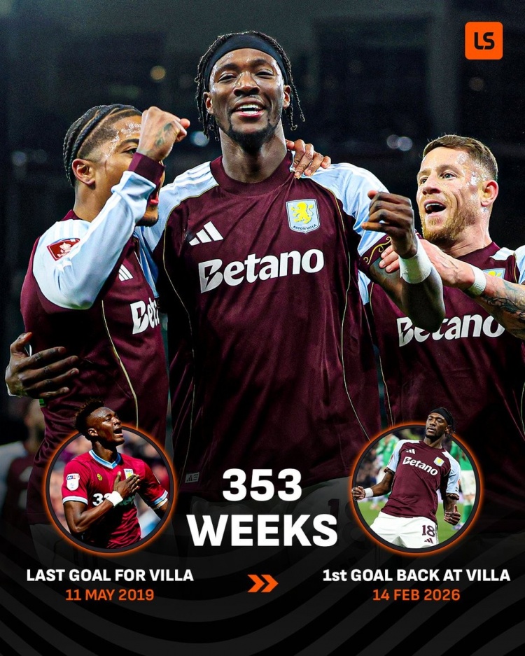 数据统计显示,亚伯拉罕时隔7年再次为维拉破门。他在效力切尔西时期曾被外租维拉,上次破门还是2019年的英冠升级附加赛,已经时隔353周。
