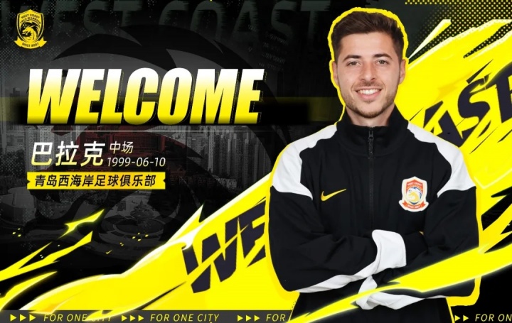 诚挚欢迎巴拉克加入青岛西海岸队!期待巴拉克尽快融入团队,与球队并肩作战,共筑青岛足球崭新辉煌!