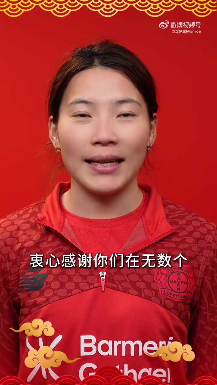 直播吧2月16日讯 效力于勒沃库森女足的中国女足球员沈梦露发布一段视频,她送上新春祝福。