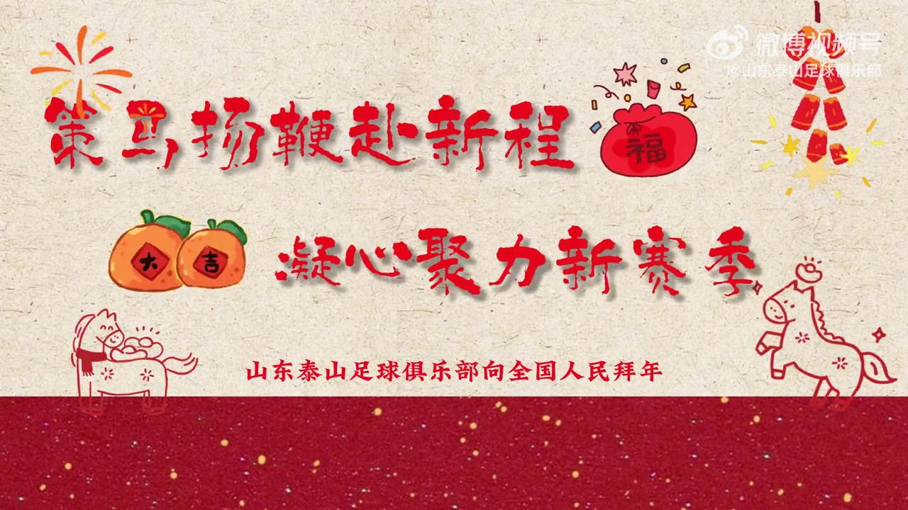 策马扬鞭赴新程,凝心聚力新赛季。山东泰山足球俱乐部给您拜年啦!祝大家马年大吉,万事顺意!