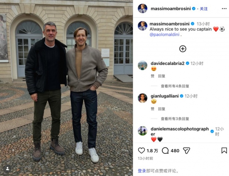 安布罗西尼在社媒写道:“队长,与你相见总会让我感到高兴。”多纳鲁马、卡拉布里亚在社媒底下评论点赞。
