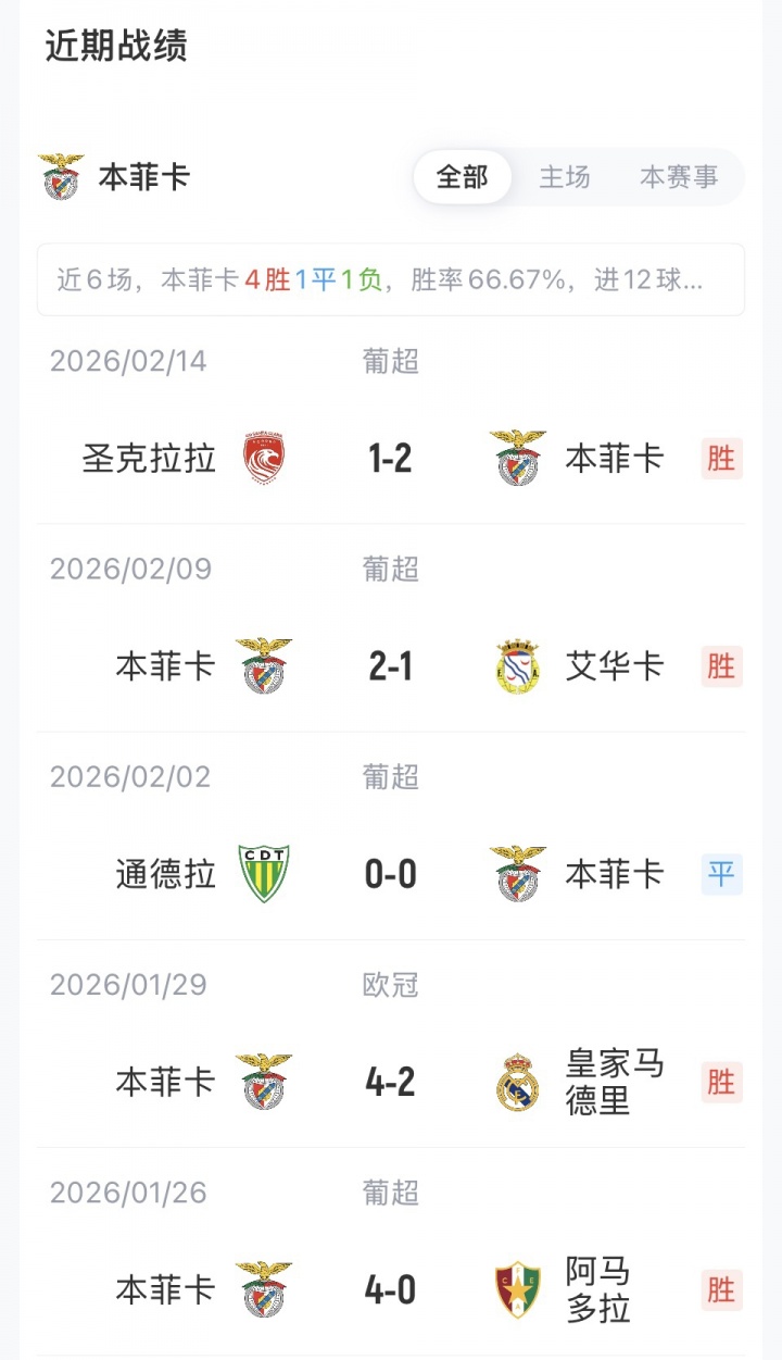 本菲卡首发:1-特鲁宾、44-托马斯·阿劳霍、30-奥塔门迪、17-德蒂奇、26-达尔、21-谢尔德鲁普、8-奥瑟斯、18-巴列罗、25-普雷斯蒂亚尼、27-拉法·席尔瓦、14-帕夫利季斯