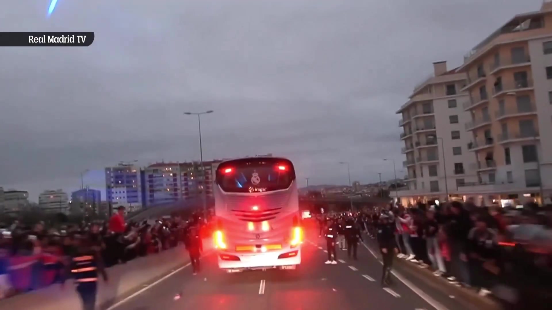 记者José Luis Sánchez报道,皇马全队所乘大巴在前往光明球场时遭球迷投掷杂物,因此不得不绕路而行。