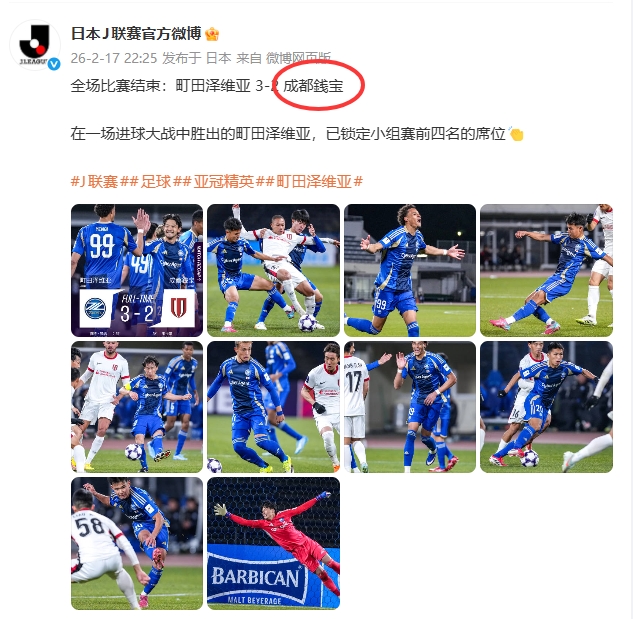 抽象!J联赛官博将成都蓉城写成“成都钱宝”