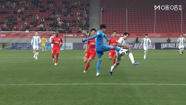 逃过一劫!颜骏凌出击将对手前锋踢倒,好在裁判示意越位