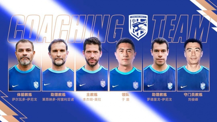 随着2026赛季大幕将启,武汉三镇一线队已于冬训期间完成了教练团队的组建。球队主教练为本杰明-莫拉,武汉三镇足球俱乐部副总经理于晨兼任球队领队,两名助理教练分别是莱昂纳多-阿雷利亚诺和罗德里戈-伊尼戈,刘俊峰指导担任守门员教练,体能教练则是萨尔瓦多-伊尼戈。