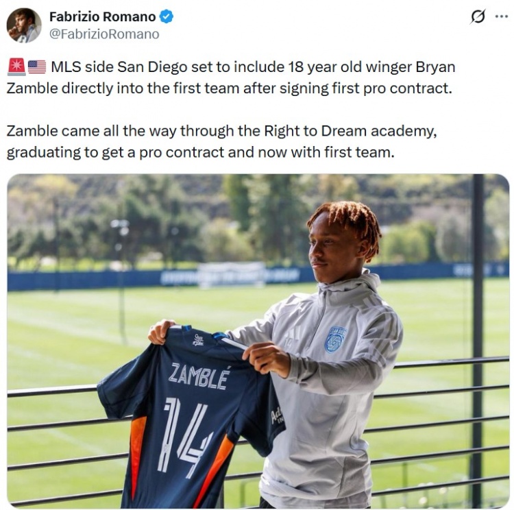 直播吧2月19日讯 据知名转会记者罗马诺报道,美职联球队圣地亚哥FC计划直接提拔18岁边锋布莱恩·赞布尔进入一线队。
