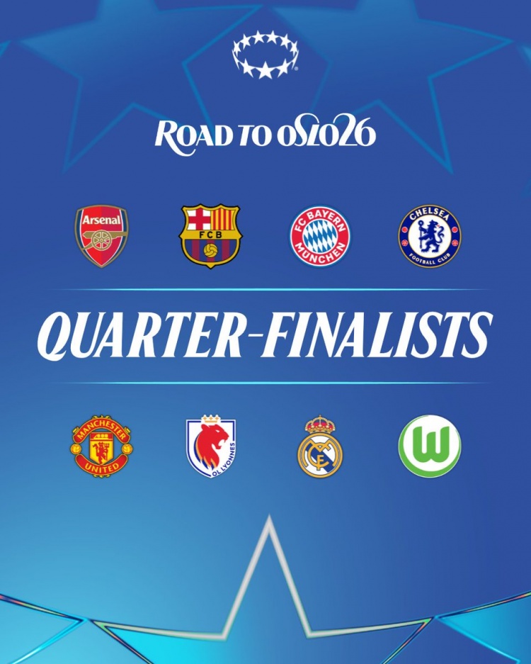 女足欧冠8强对阵:皇马vs巴萨、曼联vs拜仁、阿森纳vs切尔西