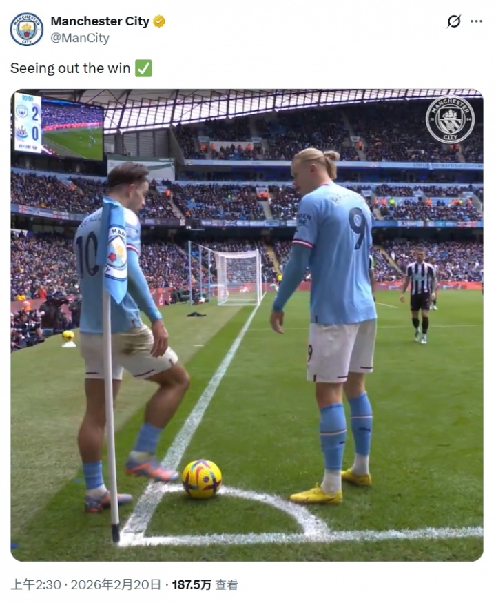 直播吧02月20日讯 曼城将在本轮英超迎战纽卡,赛前曼城官方社媒分享了一段3年前哈兰德对纽卡连续造角球拖延时间的欢乐片段。并且配文:“守住胜果”。