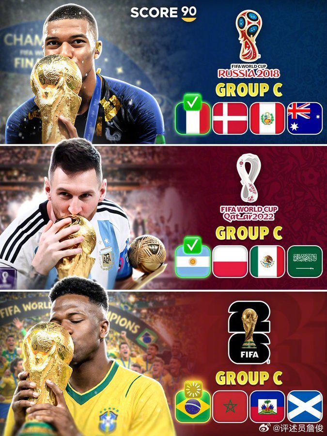 詹俊表示:过往两届世界杯冠军都出自当届决赛圈小组赛的C组,那今年巴西队有机会么?