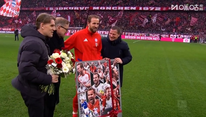 >凯恩上一场比赛迎来生涯500球里程碑 拜仁高层本场赛前赠送纪念品