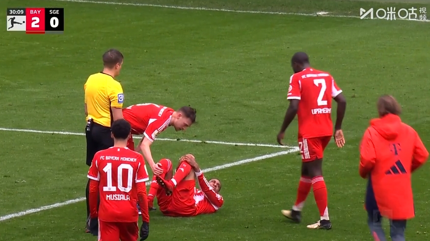 直播吧02月21日讯 拜仁vs法兰克福第30分钟,奥利塞在摆脱射门后倒地,捂着自己的左膝,随后队医进场治疗。