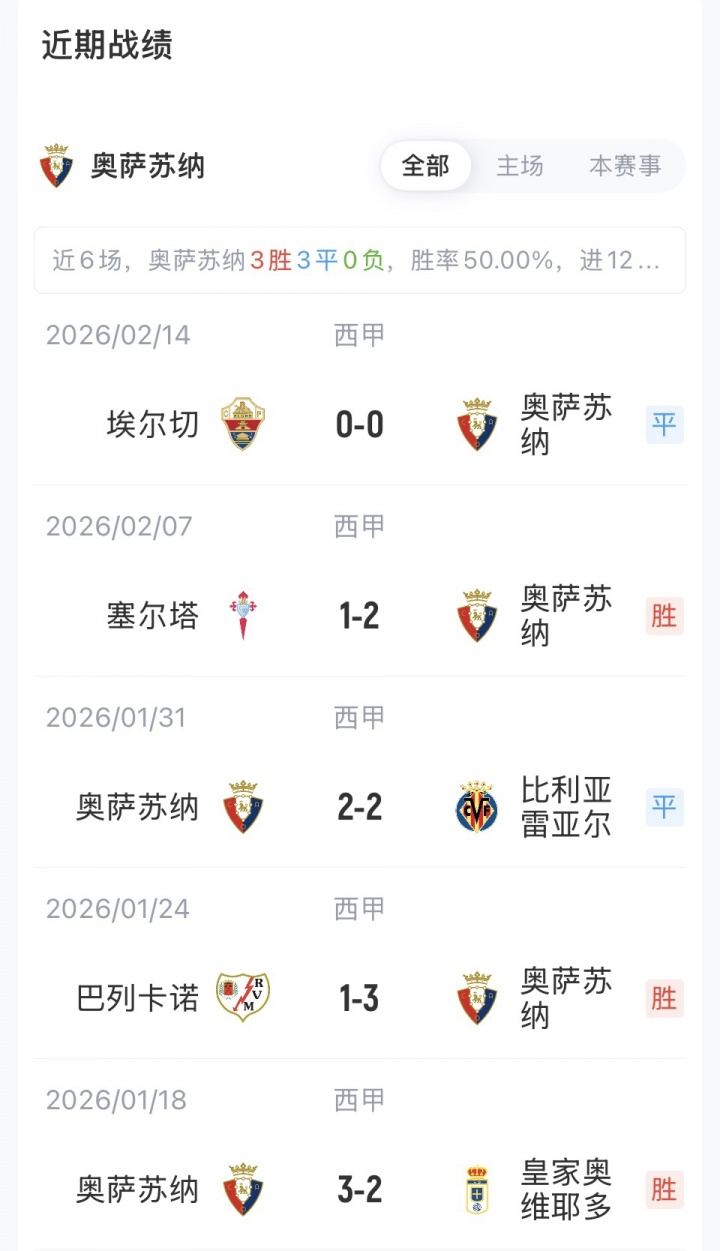 奥萨苏纳首发:1-塞尔吉奥·埃雷拉、5-豪尔赫·埃兰多、24-亚利扬德罗·卡特纳、19-瓦朗坦·罗西耶、20-哈维·加兰、6-卢卡斯·托罗、7-蒙卡约拉、21-维克托·穆尼奥斯、17-布迪米尔、10-奥罗斯、14-鲁本·加西亚