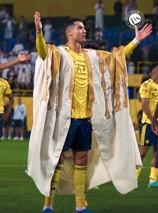 >C罗赛后披传统服饰Bisht长袍,庆祝沙特国庆