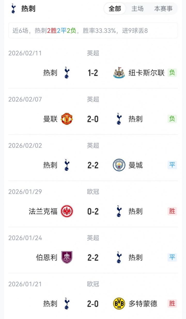 本场比赛前热刺7胜8平11负,积29分排名英超第16;阿森纳17胜7平3负,积58分排名英超榜首,目前领先第二的曼城2分。