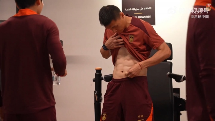 已退役1年!U23国足比腹肌,37岁助教于大宝亮腹肌:我就剩两块了
