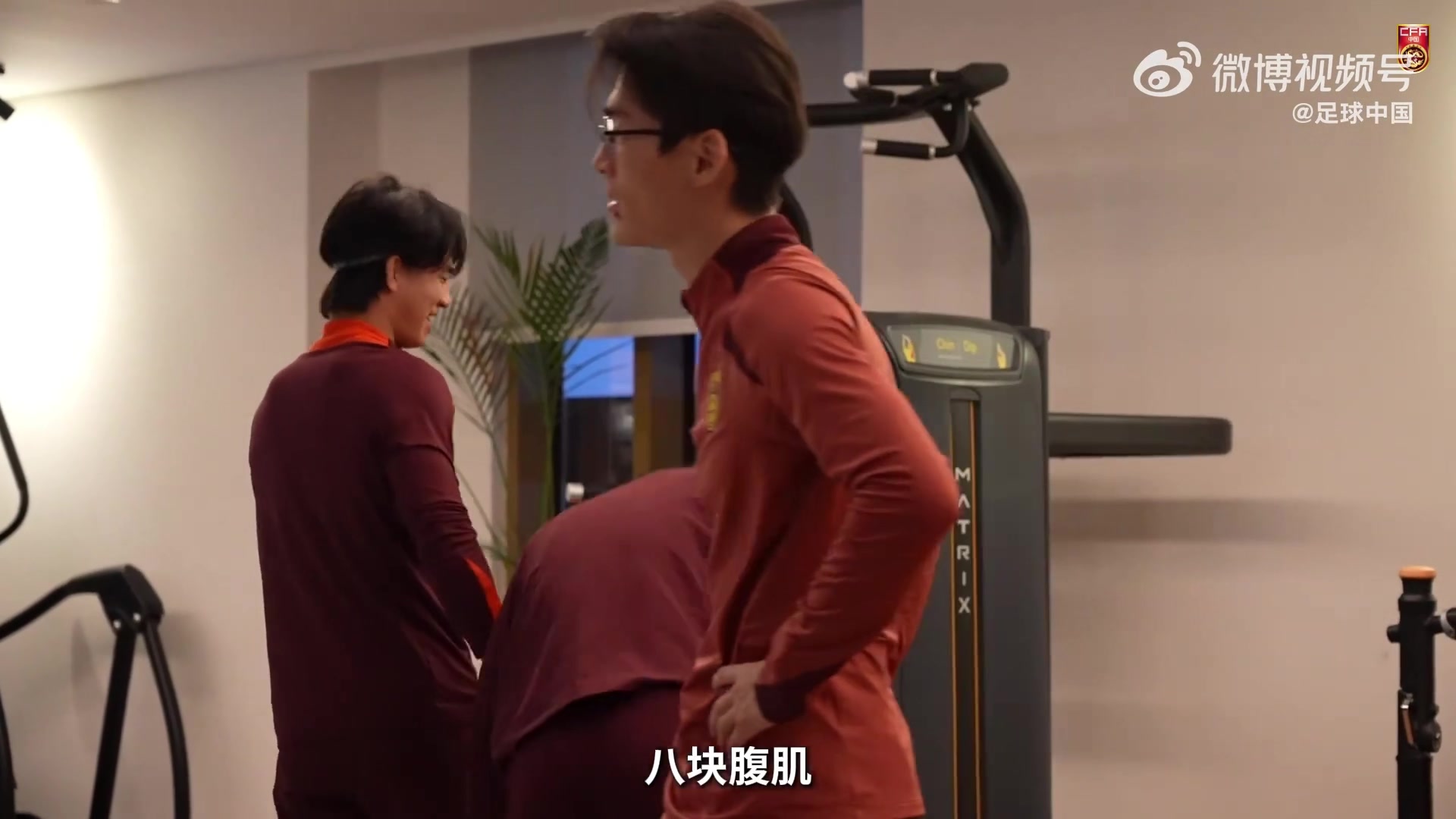>已退役1年!U23国足比腹肌,37岁助教于大宝亮腹肌:我就剩两块了