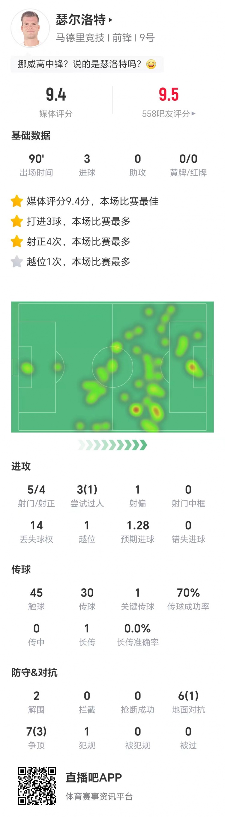 赛后技术统计数据显示,瑟尔洛特本场比赛5射4正,3次过人成功1次,1次关键传球,6次地面对抗成功1次,7次争顶成功3次,获评9.4分。