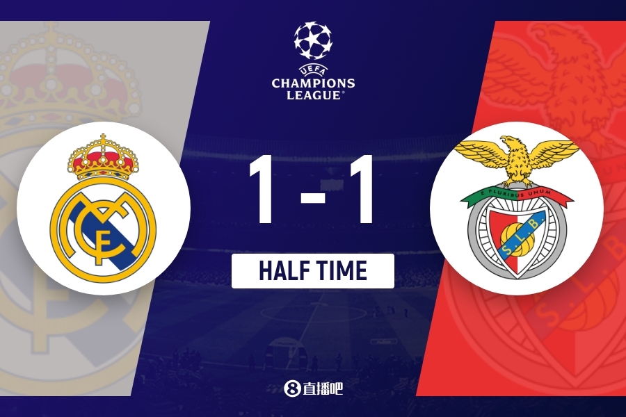 直播吧2月26日讯 直播吧2月26日讯 北京时间4:00,欧冠1/8决赛附加赛次回合皇家马德里vs本菲卡,比赛在伯纳乌球场打响!上半场,拉法·席尔瓦帮助本菲卡率先破门,仅2分钟后琼阿梅尼迅速还以颜色;居莱尔进球被判越位。半场结束,皇马暂1-1本菲卡,总比分2-1暂时领先。