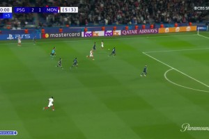 第45分钟,摩纳哥右路传中被门将扑了一下,左路摩纳哥继续组织进攻下底回做禁区,禁区内库利巴利做球,阿克利乌舍左脚打门,皮球击中左侧立柱内侧弹进网窝!摩纳哥1-0总比分3-3巴黎↓
